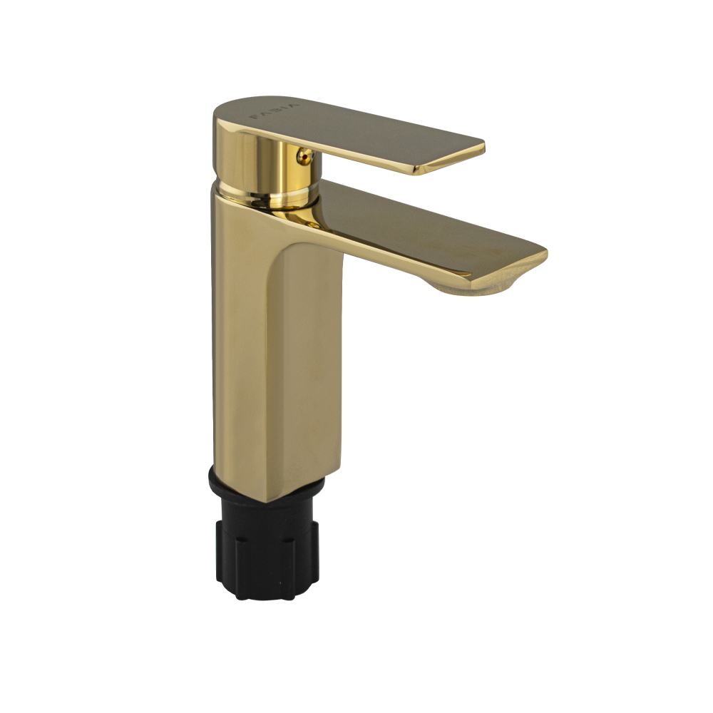Смеситель для раковины, литой корпус, цвет золото, с прямым плоским изливом, ручка литая, шаровый. Крепление резьба – гайка, картридж d = 35 мм. Аэратор для экономии воды. Такая модель может использоваться на домашней кухне, на даче, в медицинских учреждениях и общественных местах. Габаритные размеры: высота 155 мм, длина 140 мм, посадочное седло 45 мм, длина резьбы 50 мм, длина подводки 500 мм. Вес – 1,5 кг, объём – 0,00273 м3. В комплекте паспорт, корпус, подводка 1/2, крепеж, набор прокладок. ок