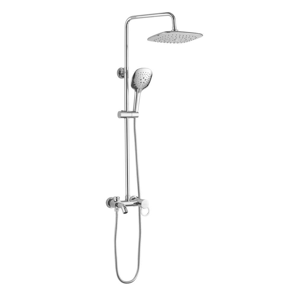 Смеситель + стойка душевая “тропический душ” с двумя лейками в ванную, хромированные. В дизайне душевой стойки гармонично соединились строгие линии и мягкие переходы. Она отлично впишется в интерьер ванной комнаты в минималистическом стиле. Глянцевое хромированное покрытие не стирается и сохраняет первозданный внешний вид в течение всего периода эксплуатации. Длительную работу без протечек обеспечивает смеситель с керамическим картриджем. Предусмотрен излив для наполнения ванны. Угол наклона верхнего душа можно регулировать в соответствии с потребностями каждого пользователя. Ручная лейка оснащена металлическим шлангом, который не перекручивается во время водных процедур. Смеситель шаровый с коротким изливом, душевым шлангом и лейкой и дивертор переключения в трёх положениях. Картридж d = 35 мм, ручка с кольцом, аэратор для экономии воды, чашки и эксцентрики. Душевая стойка с присоединением к корпусу смесителя и дополнительным креплением к стене и большой квадратной лейкой с эффектом тропического душа. Габари