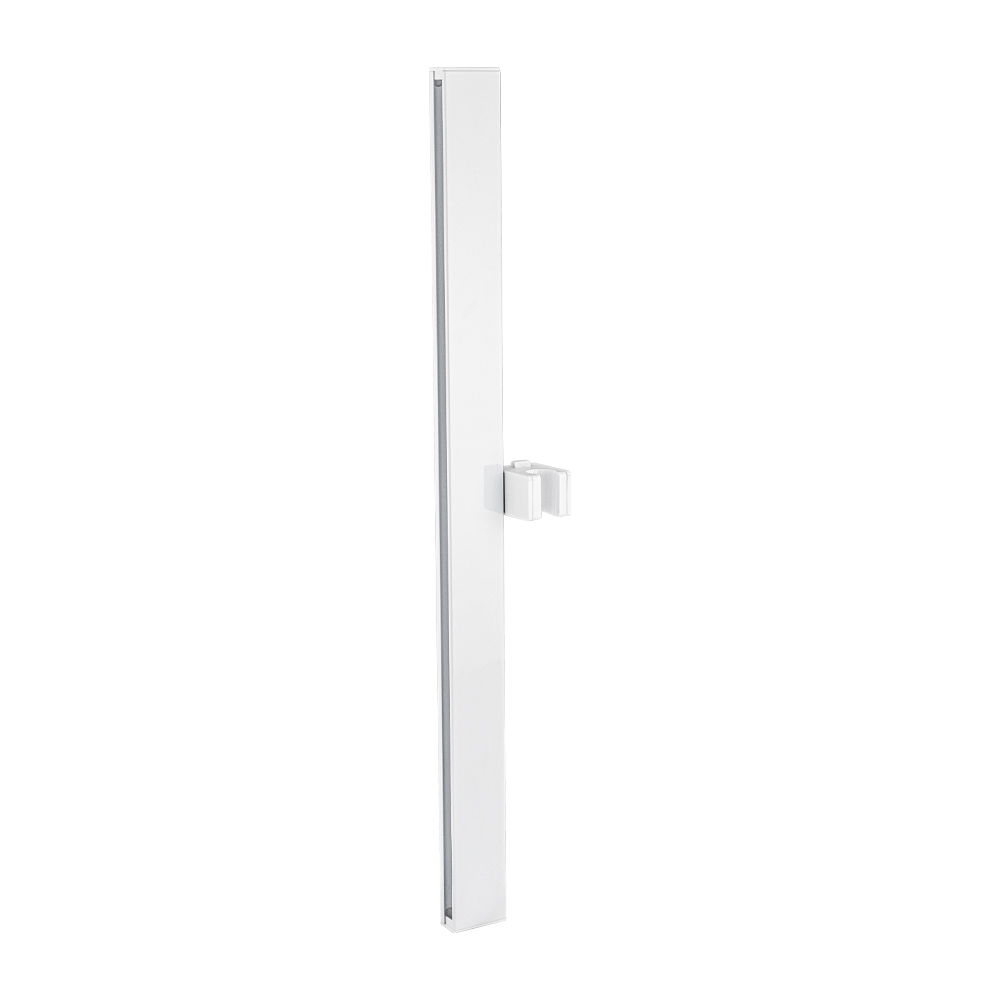 Душевая стойка, глянцевая, квадратный профиль, цвет белый, произведена из высокопрочного АБС пластика, устойчивой к агрессивному воздействию внешней среды и механическим деформациям, держатель для душа с механической фиксацией и регулировкой по высоте. Размеры: высота штанги 655 мм, глубина 20 мм, ширина трубы 47 мм, расстояние между креплением 605 мм. Вес – 0.49 кг, объём – 0.00495 м3. В комплекте душевая штанга, крепления, держатель душевой лейки.